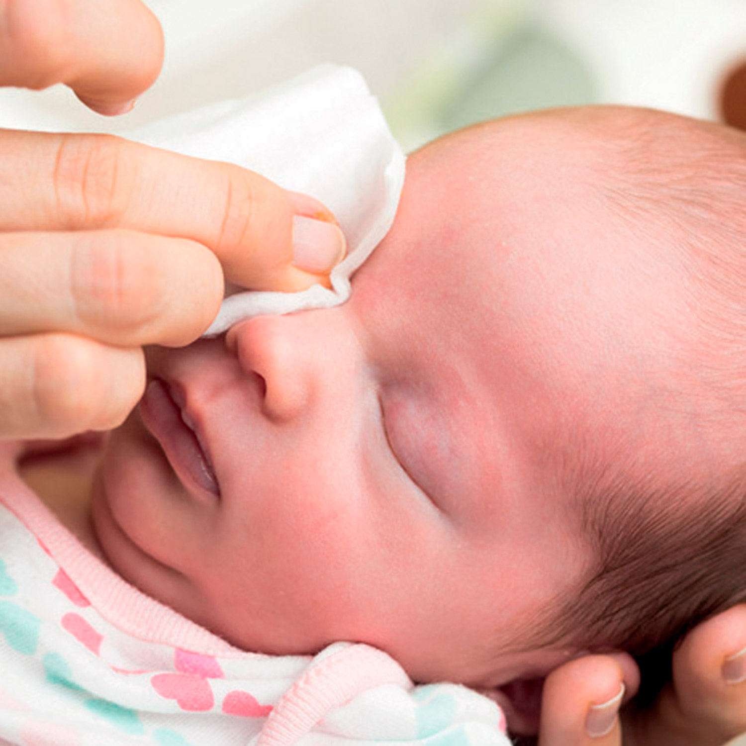 Toallitas húmedas desechables recomendadas para la higiene diaria de la zona periocular en bebés, niños.